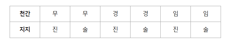- 천간: 무(戊), 경(庚), 임(壬)