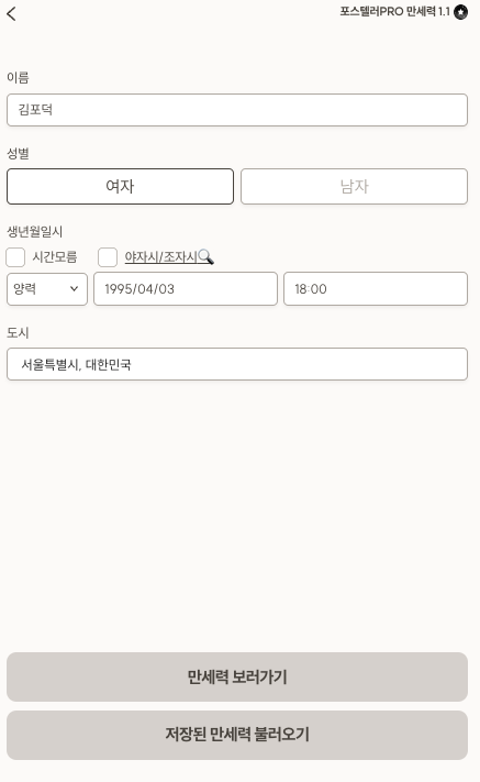 - 사주는 분 단위로도 차이 발생하기 때문에 정확한 시간 필요