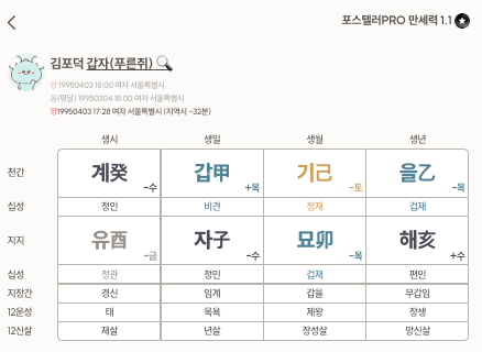 👉 일주 검색 or 포스텔러 내 해석 클릭으로 상세 성격 확인
