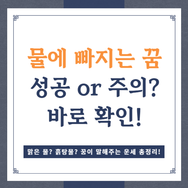 특히 물에 빠지는 꿈은 크게 두 가지로 해석됩니다.