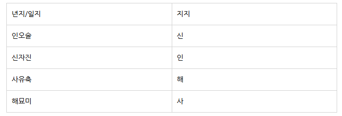 인오술 = 신 / 신자진 = 인 / 사유축 = 해 / 해묘미 = 사