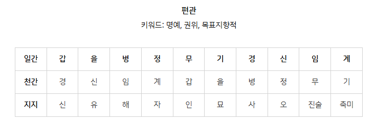 | 편관 | 명예, 통제 | 목표 지향적이며 권위적 |