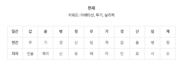 | 편재 | 이해타산, 투기 | 외향적이고 빠른 판단력 |