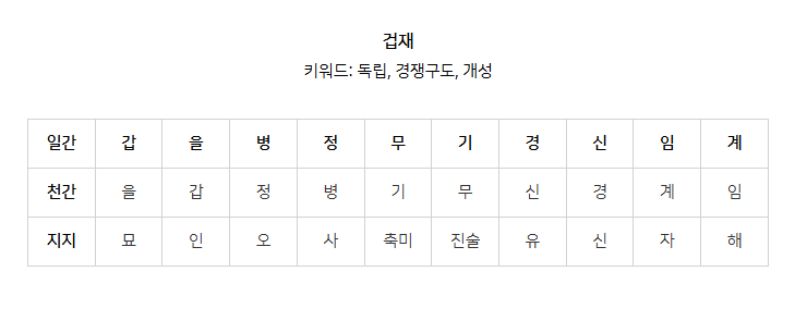 | 겁재 | 경쟁, 독립 | 강한 개성과 주도권 |