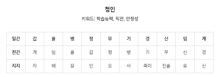 | 정인 | 학습능력, 안정 | 꾸준한 지식 추구 |