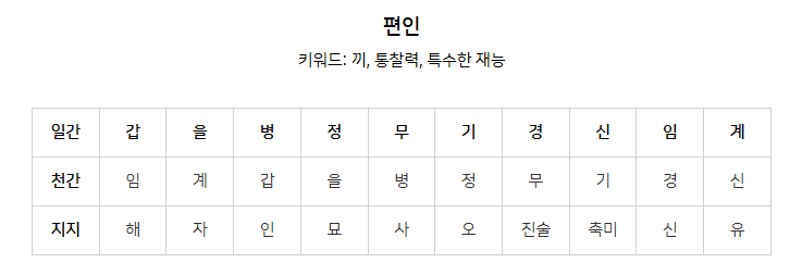 | 편인 | 통찰력, 특수재능 | 독창적인 아이디어 |