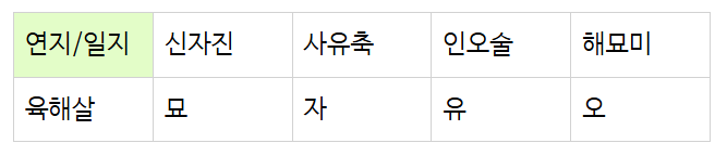 육해살은 특정 지지의 조합으로 나타납니다.