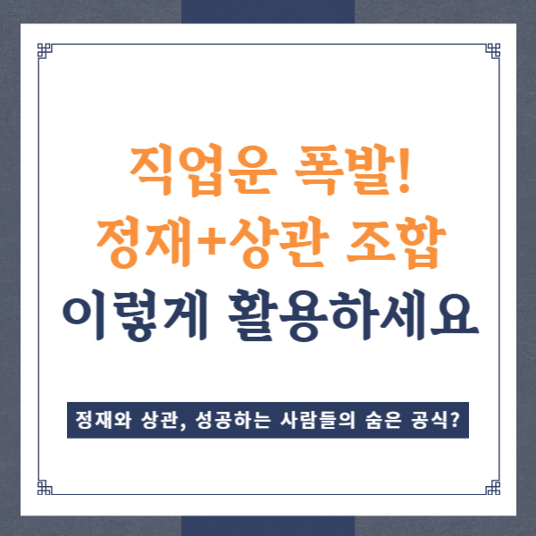 정재와 상관이 조화를 이루면, 안정성과 창의성을 모두 갖춘 강력한 직업적 장점을 만들어냅니다.