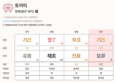 → 만세력에서 ‘년지’를 꼭 확인하세요!