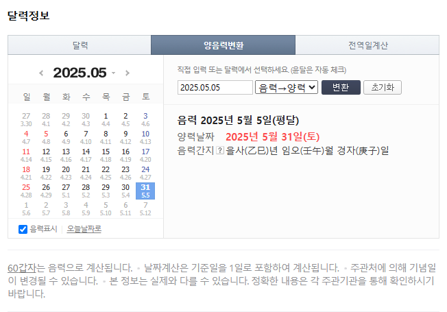 정확한 음력 날짜와 윤달 여부를 쉽게 확인할 수 있습니다.